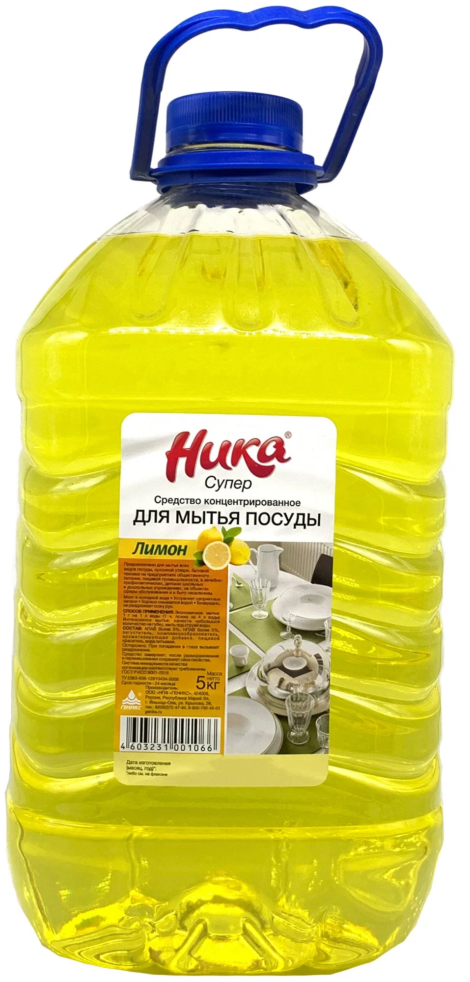 Средство для мытья посуды 5 кг, НИКА "Супер", лимон, концентрат, ПЭТ