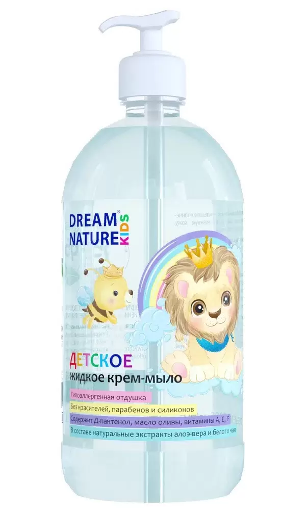 Детское жидкое крем-мыло DREAM NATURE KIDS «Алоэ-вера» содержит 95% ингредиентов натурального происхождения. Подходит для мытья рук, а также всего тела ребёнка. Разрешено к применению с первых дней жизни малыша, для новорождённых. Особенности средства: гипоаллергенная отдушка; без красителей, парабенов и силиконов; содержит Д-пантенол, масло оливы, витамины A, E, F; в составе натуральные экстракты алоэ вера и белого чая. Объем-1 л.