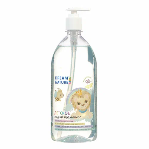 Жидкое крем-мыло «Алоэ-вера и белый чай» DREAM NATURE KIDS — это гипоаллергенное средство для детей. Подходит для мытья рук, а также всего тела ребёнка. Разрешено к применению с первых дней жизни малыша, для новорождённых. Особенности: на 95% состоит из ингредиентов натурального происхождения; содержит мягкие моющие компоненты для деликатного очищения; обогащено комплексом витаминов A, E, F, Д-пантенола, масла оливы, и растительных экстрактов алоэ вера и белого чая; приятный лёгкий аромат; без красителей, парабенов и силиконов; подходит мальчикам и девочкам. Объем- 1 л.