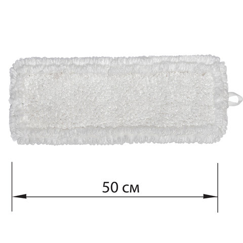Моп имеет форму плоского прямоугольника, такая форма и чистящая поверхность из ворса длиной 3,5 см позволяет удобно собрать грязь по углам и захватить большую площадь убираемой поверхности, что в свою очередь уменьшает временные затраты на уборку больших площадей. Устойчива к износу, что обеспечивает долгий срок службы уборочного инструмента. Выполнена из микрофибры, имеет размер 50х14 см. Выдерживает до 300 циклов стирки. Максимальный объем впитывания – 550 мл.