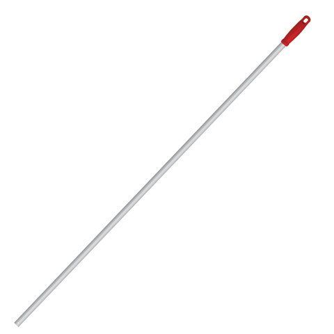 Черенок без резьбы применяется с швабрами-флаундер и держателем типа "Кентукки" с затяжной гайкой. Прочная, но легкая ручка изготовлена из алюминия. Снабжена петлей для удобного хранения. Крепится с помощью отверстий для сквозного фиксатора (тип B, димаетр – 2,5 см). Длина черенка – 140 см.