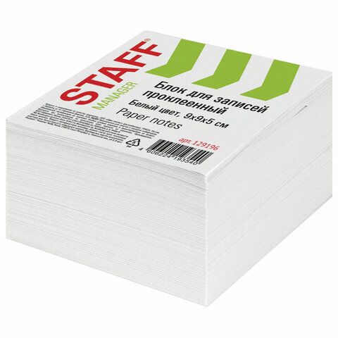 Блок высотой 5 см сложен из квадратных листов размером 9х9 см. Листы изготовлены из высококачественной офсетной бумаги плотностью 60 г/м2 и белизной 90-92%. Блок для записей подходит для письма любыми типами ручек и карандашей. Поставляется в плотной термоусадочной пленке, защищающей при транспортировке. Может использоваться как в пластиковых подставках для настольных органайзерах, так и без подставок, поскольку листы проклеены по одной стороне, что делает блок устойчивым и листы не рассыпаются.