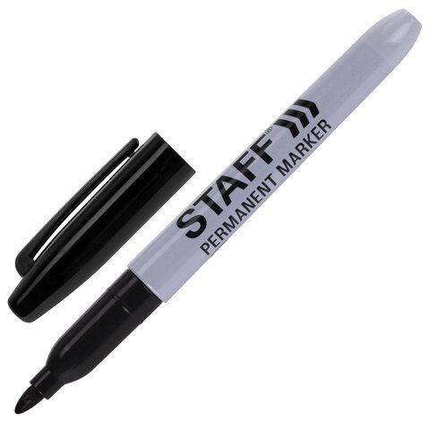Маркер перманентный STAFF предназначен для письма на любой поверхности: бумага, полиэтилен, дерево, стекло, металл, натуральная кожа, ткань, камень, плитка. Маркер перманентный черного цвета обладает круглой формой корпуса из пластика, диаметр которого 12 мм. Толщина линии письма - 2-4 мм в зависимости от угла наклона. Особая нестираемая основа перманентного маркера обеспечивает такие качества, как стойкость к воздействию воды, ультрафиолета, низких и высоких температур. Благодаря спиртовой основе чернила быстро сохнут и не смазываются. Износостойкий фетровый наконечник устойчив к повреждениям и обеспечивает экономный расход чернил. Изделие не перезаправляется. Плотно закрывается колпачком, что предотвращает высыхание наконечника и чернил. Цвет колпачка с клипом соответствует цвету чернил.