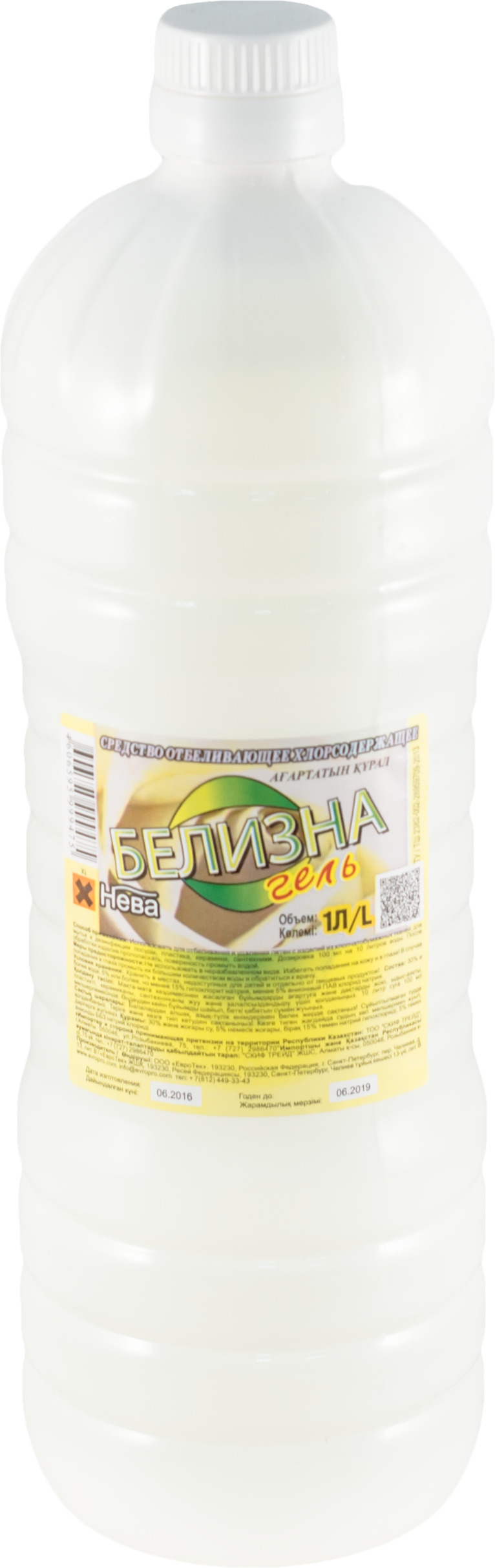 Отбеливающее средство «Белизна Нева-Гель» — это хлорсодержащее средство для отбеливания и удаления пятен с изделий из хлопчатобумажных тканей, для мытья и дезинфекции посуды, пластика, керамики, сантехники. Состав: 30% и более вода, 5% или более, но менее 15% гипохлорит натрия, менее 5% анионных ПАВ, хлорид натрия. Объем-1 л.