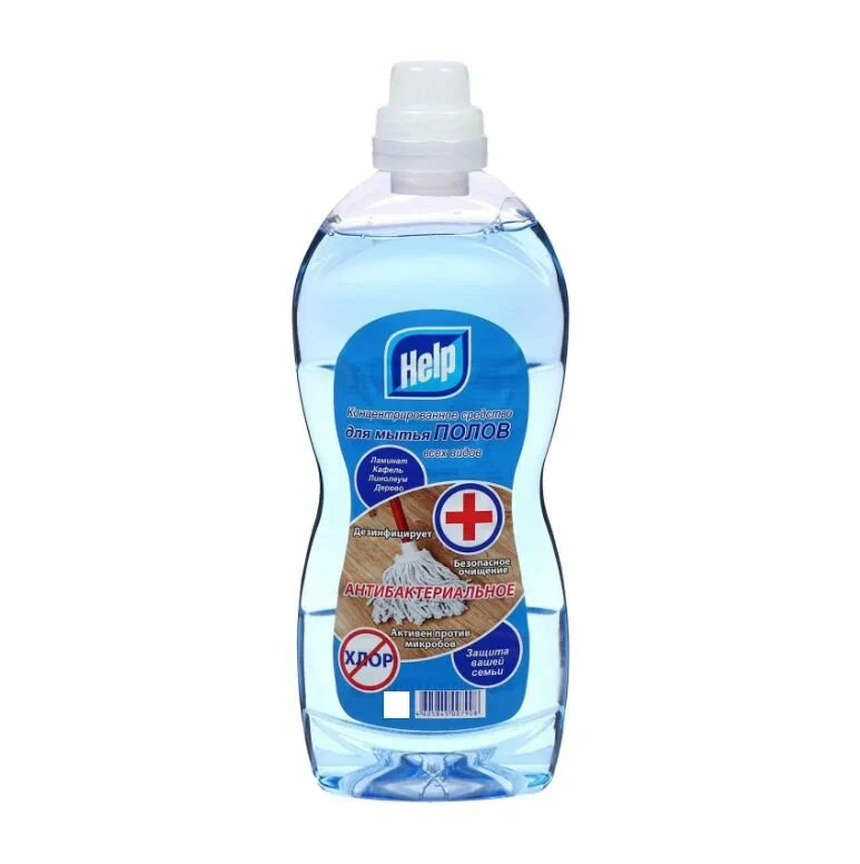 Концентрированное антибактериальное средство для мытья полов «Help» предназначено для очистки полов любого типа (ламинат, дерево, линолеум, кафель) от застарелой грязи и жировых пятен. Описание: не требует дополнительного смывания после обработки; не оставляет разводов; дезинфицирует и придаёт очищаемой поверхности естественный блеск и приятный аромат; легко и быстро удаляет даже самые стойкие загрязнения, не повреждая поверхность. Состав: вода, более 5%, но не менее 15% анионного ПАВ, менее 5% неионогенного ПАВ, цитрат натрия, силикон, менее 5% парфюмерной композиции, менее 5% консерванта, краситель. Объем-1 л.