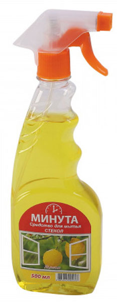 Средство для мытья стёкол «Минута» «Лимон» (с распылителем) — это универсальное средство для мытья оконного, автомобильного стекла, зеркал, экранов телевизоров, стеклянной посуды. Описание: быстро и легко удаляет пыль, следы от пальцев, жировые и другие загрязнения, не оставляя разводов и мутных пятен;