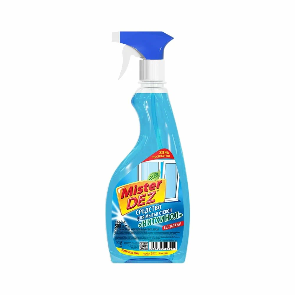Средство для мытья стёкол и зеркал Mister DEZ Eco-Cleaning «Нитхинол» — это спрей на спиртовой основе без аммиака и отдушки. Специальная формула легко удаляет отпечатки пальцев, следы от косметики и зубной пасты, высохшие капли воды, пыль, стойкие загрязнения. Придаёт блеск, не оставляя разводов. Предназначен для стёкол (в том числе тонированных и автомобильных), окон, зеркал, твёрдых глянцевых и хромированных поверхностей, кафеля, нержавеющей стали, телевизоров, мониторов и компьютеров. После использования не требует смывания — просто распылите и протрите насухо впитывающей салфеткой. Способ применения: равномерно нанести средство на очищаемую поверхность, насухо протереть мягкой, не ворсистой тканью. Состав: 30% и более вода; менее 5%: бутиловый эфир пропиленгликоля, ЭДТА, CI 42090, консервант. Объем- 500 мл.
