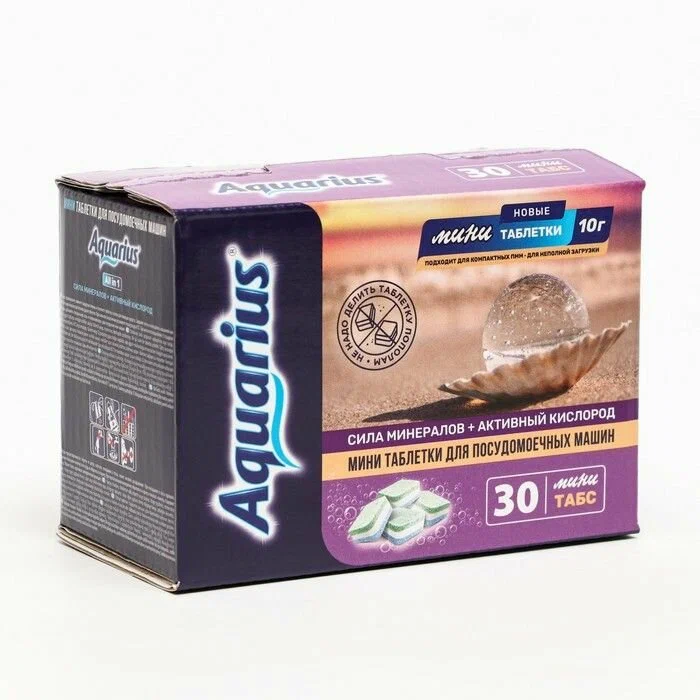 Таблетки для посудомоечной машины «Aquarius» mini tabs 10гр «Сила минералов + Активный кислород» описание:
