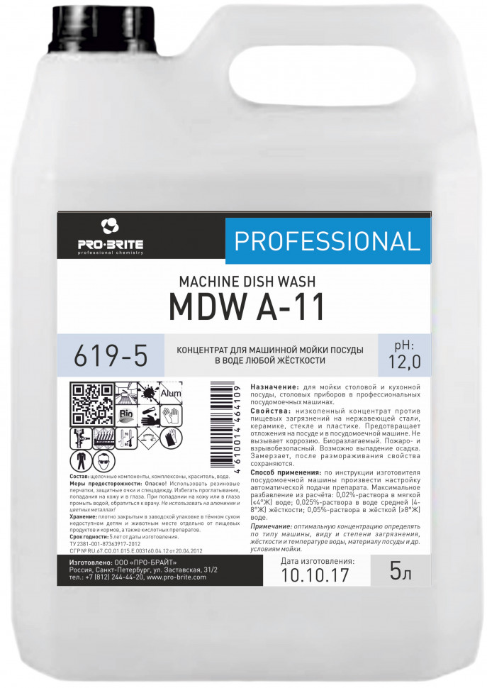MDW A-11(Концентрат для машинной мойки посуды и тары в воде любой жёсткости)