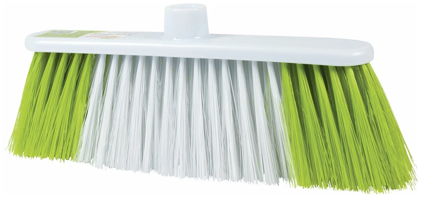 Щетка для уборки «ЛЮБАША» с шириной 31 см, щетиной 8 см, двуцветная, пластиковая, с креплением еврорезьба предназначена для внутренней и наружной сухой уборки в офисах, на производственных предприятиях и в других помещениях. Колодка щётки выполнена из пластика. Мягкая щетина сделана из полипропилена. Длина щетины — 8 см, ширина щётки — 31 см. Глубина щётки — 5 см. Совместима с черенком с еврорезьбой. Выполнена в бело-зелёном цвете.