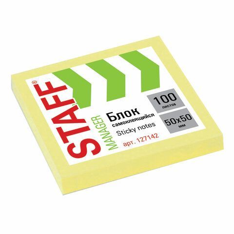 Блок самоклеящийся (стикеры) STAFF, 50х50 мм, 100 листов, желтый