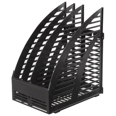 Лоток вертикальный для бумаг STAFF, 245х165х285 мм, 3 отделения, сетчатый, сборный, чёрный — лёгкий и прочный лоток для хранения и сортировки документов и папок.
