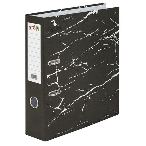 Папка-регистратор STAFF незаменима в работе офисных сотрудников различных специальностей, направлений и должностей. Предназначена для хранения и ведения документации. Папка формата А4 с вертикальной ориентацией изготовлена из высококачественного износоустойчивого картона с покрытием под "мрамор". Ширина корешка 75 мм позволяет разместить до 500 листов. Прорези для колец на внешней крышке позволяют папке оставаться закрытой даже при большом количестве бумаг, а надежный арочный механизм легко справляется с ежедневными нагрузками. Корешок снабжен этикеткой для маркировки содержимого, что позволяет структурировать информацию. Поставляется в разобранном виде.