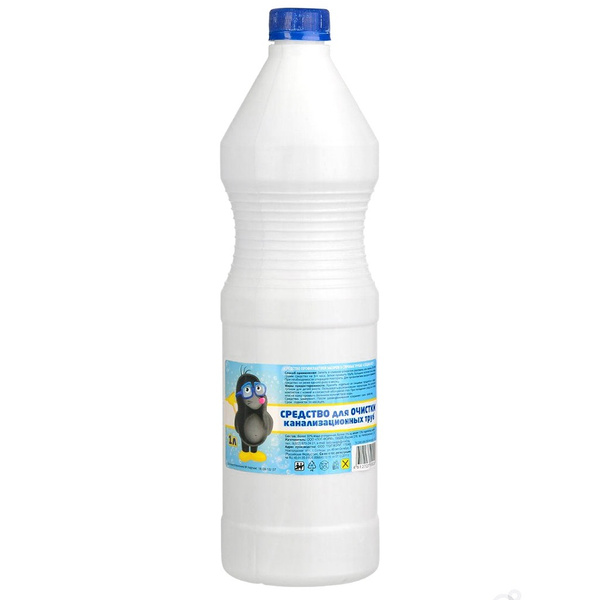 Безопасность: средство безопасно для всех типов труб, включая пластиковые и металлические. Состав: гидроксид натрия, вода, добавки для улучшения чистящих свойств. Объем- 1 л.