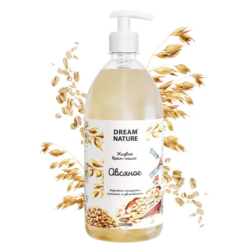 Жидкое мыло «Овсяное» от Dream Nature бережно очищает и смягчает кожу. Формула средства содержит моющие компоненты на растительной основе, которые при контакте с водой создают нежную кремовую пенку. Средство мягко и эффективно удаляет загрязнения и полностью смывается, оставляя ощущение свежести. Глицерин в составе мыла увлажняет и питает кожу, не оставляя чувства сухости и стянутости. Бетаин укрепляет гидролипидный барьер эпидермиса, надолго сохраняя кожу мягкой и гладкой. Аромат мыла с карамельно-молочными нотами нежный и деликатный. Состав: вода, лауретсульфат натрия, Бетаин, хлорид натрия, Кокамид ДЭА, Глицерин, Сополимер стирола и акрилата, Метилхлоризолинон и Метилизотиазолинон, Лимонная кислота, Парфюмированная вода, CI19140, CI16035. Объем-1 л.